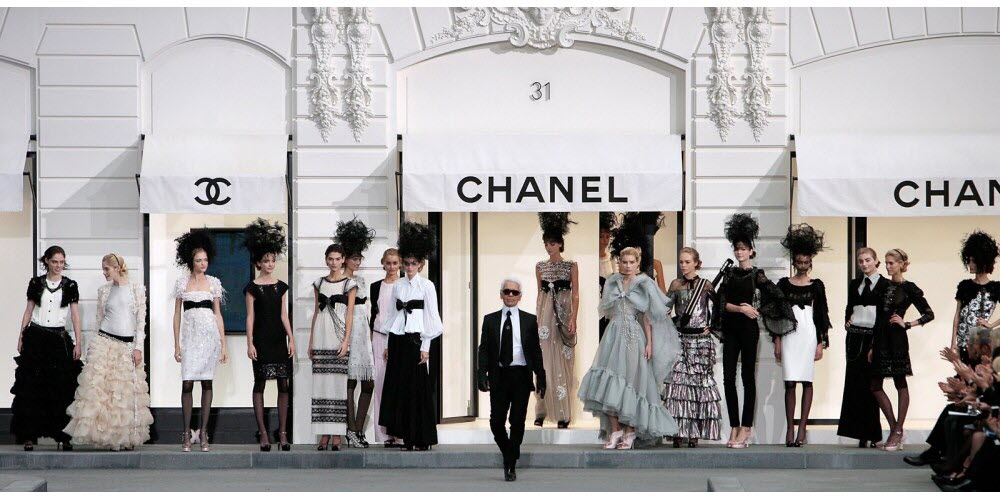 Depois da sua morte, em 1971, o estilo Chanel parecia estar congelado até que Lagerfeld, nomeado diretor artístico da CHANEL, o reinventou, em 1983, misturando clássico e irreverente: correntes douradas, ganga, cabedal e o famoso duplo “C”. Deu nova vida às coleções Croisière, introduziu os Métiers d’art e as pré-coleções, devolveu a marca à Alta-Costura e criou o Prêt-à-Porter, tal como o conhecemos hoje.