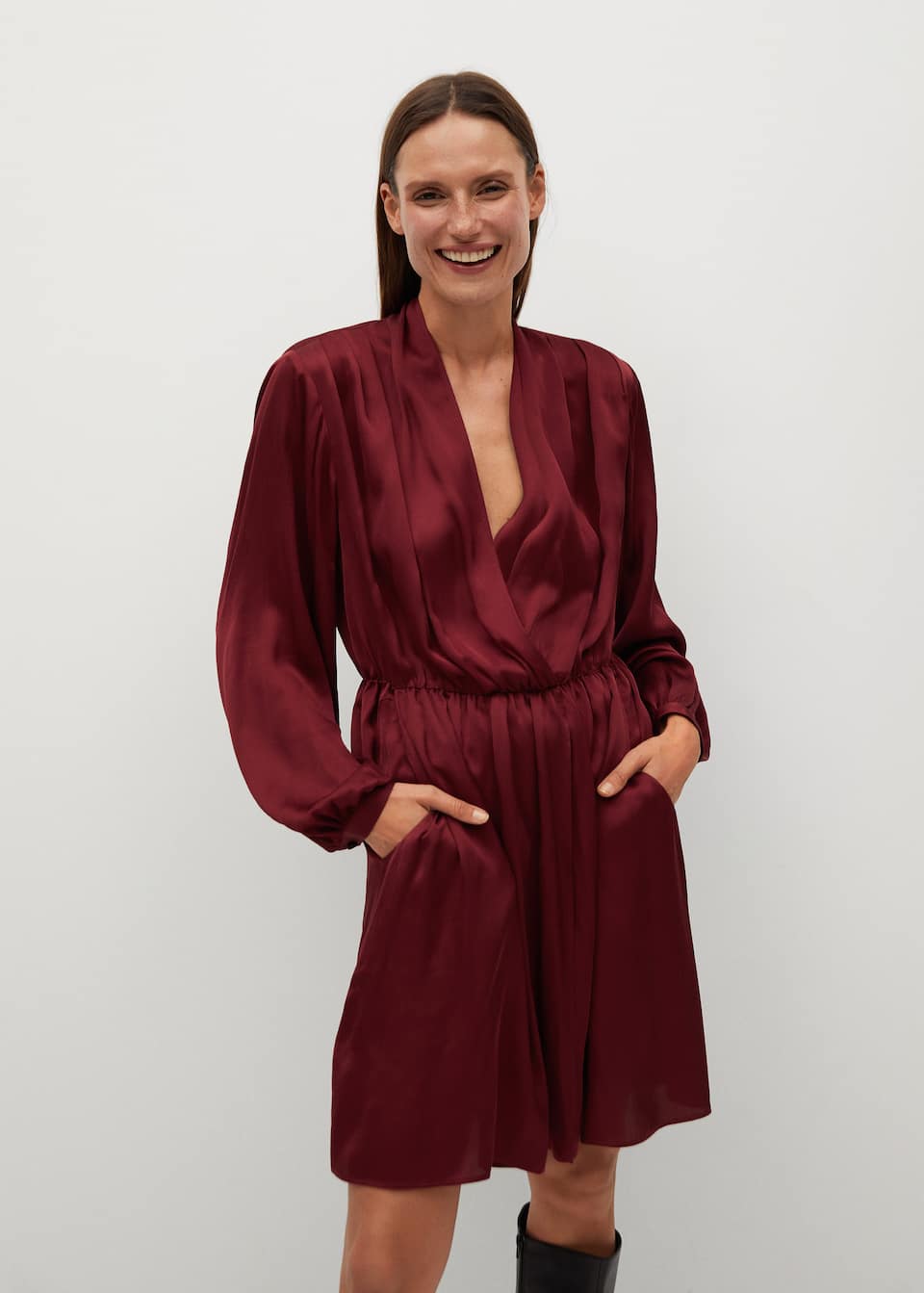 Se, por outro lado, preferem um look mais elegante, vão querer considerar este vestido acetinado com uma cor muito natalícia e um corte tão clássico como as músicas de Natal. Se quiserem manter esta linha clássica-elegante, podem conjugar o vestido com uns stilettos. Da mesma cor? Sim, porque não?