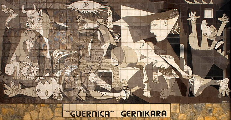 Um dos exemplos é a obra Guernica, uma das obras mais famosas de Pablo Picasso (1881–1973), pintada a óleo em 1937. É uma obra descrita como “declaração de guerra contra a guerra e um manifesto contra a violência”. Picasso denuncia os horrores da Guerra Civil Espanhola após o bombardeamento de Guernica. O choque causado pelo bombardeamento ecoou por todo o mundo. O pintor colocou sobre tela o sofrimento e a dor, criando um dos principais ícones artísticos do século passado. A obra tornou-se, assim, um símbolo universal contra a violência e o autoritarismo.