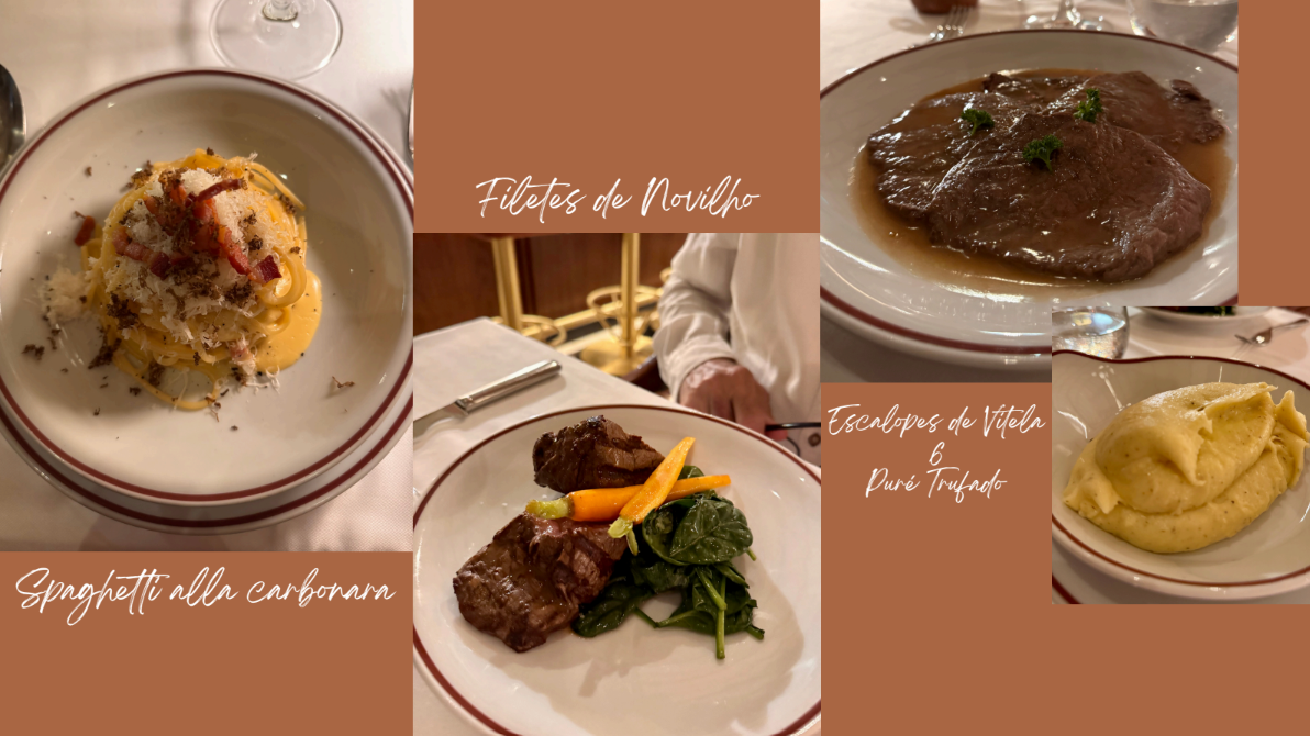 Os Escalopes de Vitela (30€) chegam suculentos e cobertos por um molho amanteigado que valoriza os sucos naturais da carne. O acompanhamento é um puré trufado, cremoso e com uma nota subtil a trufa: é daqueles que convidam a repetir garfadas. “Quanto mais se come, mais se quer” é a expressão que surge espontaneamente à mesa.